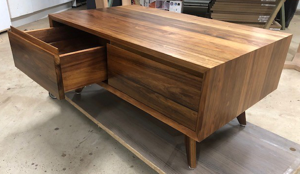 Coffee table with draws for storage, a perfect addition to any living room. Interested in custom furniture like this or have another design you need, custom timber, sizes or features? Contact Tuckers Lane Custom Furniture on 0408 38 38 02 or email us.